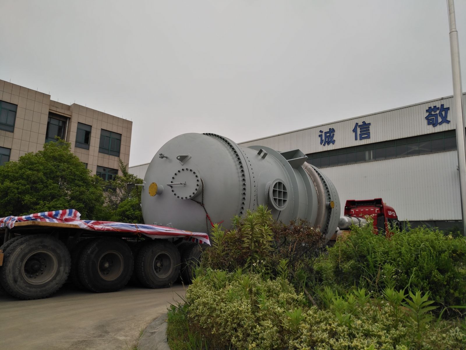該環已醇脫氫反應器為疲勞容器是項目的核心裝備,單臺設備凈重約120噸,殼程直徑約4米,換熱面積約2400平方米,設計溫度約400℃,多項技術、制造參數為公司近幾年制造最大產品之一。