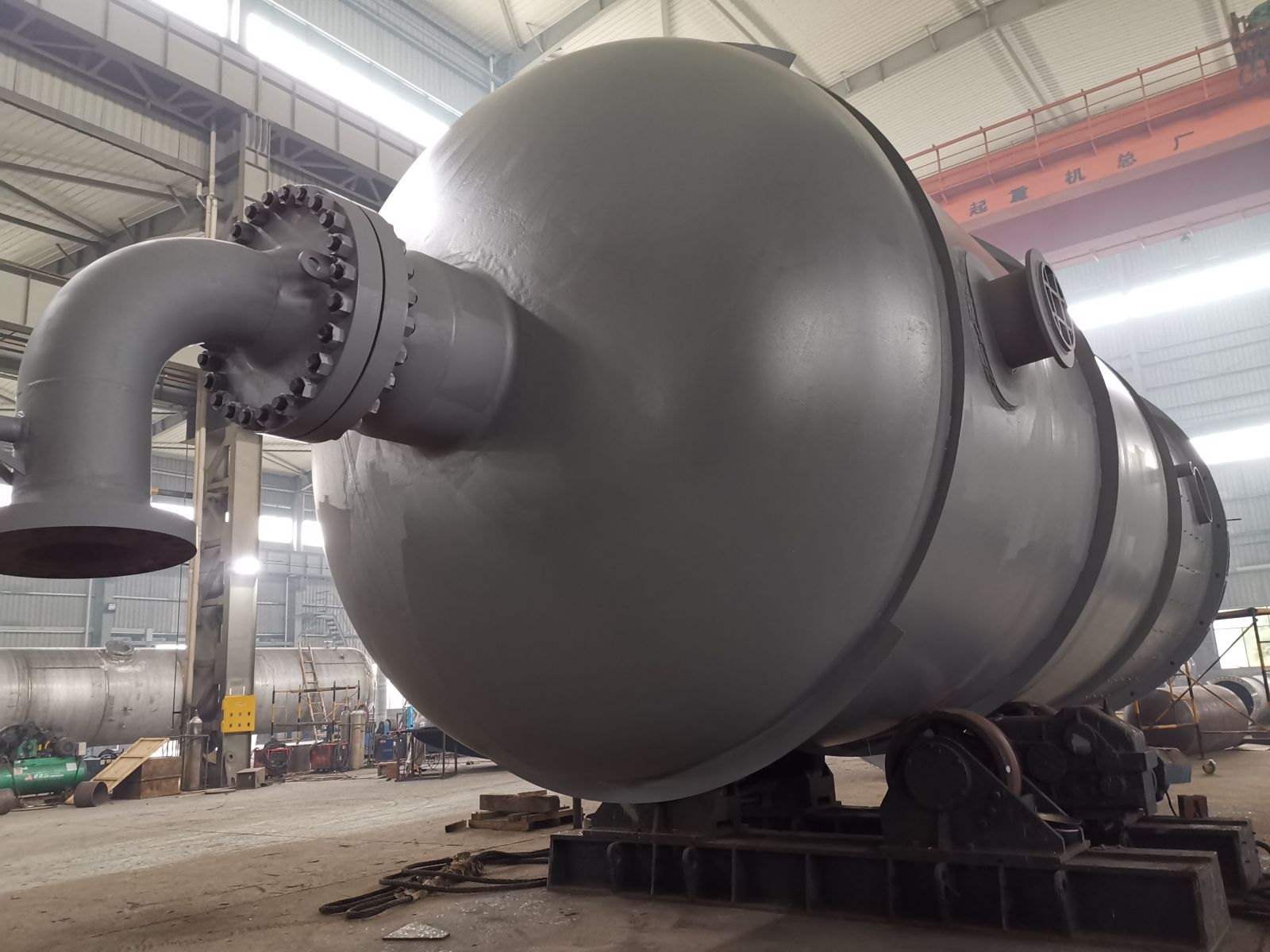 我公司承接湖北三寧項目2臺吸附器,該設備直徑4米,長11米,設備厚度達100毫米。為近年之最,目前已具備發貨條件。