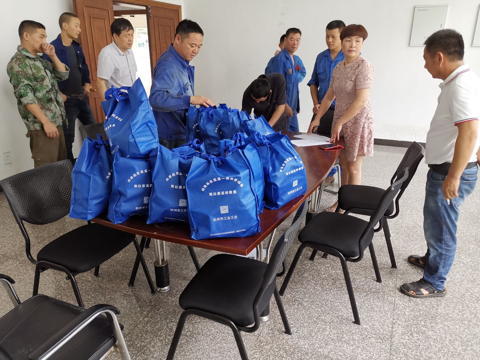烈日炎炎杭州總工會向誠泰所有職工發放夏季涼品
