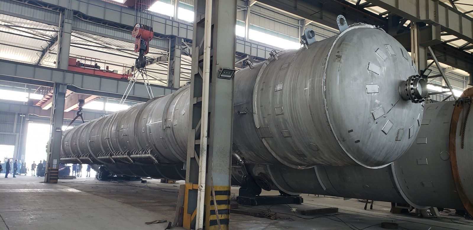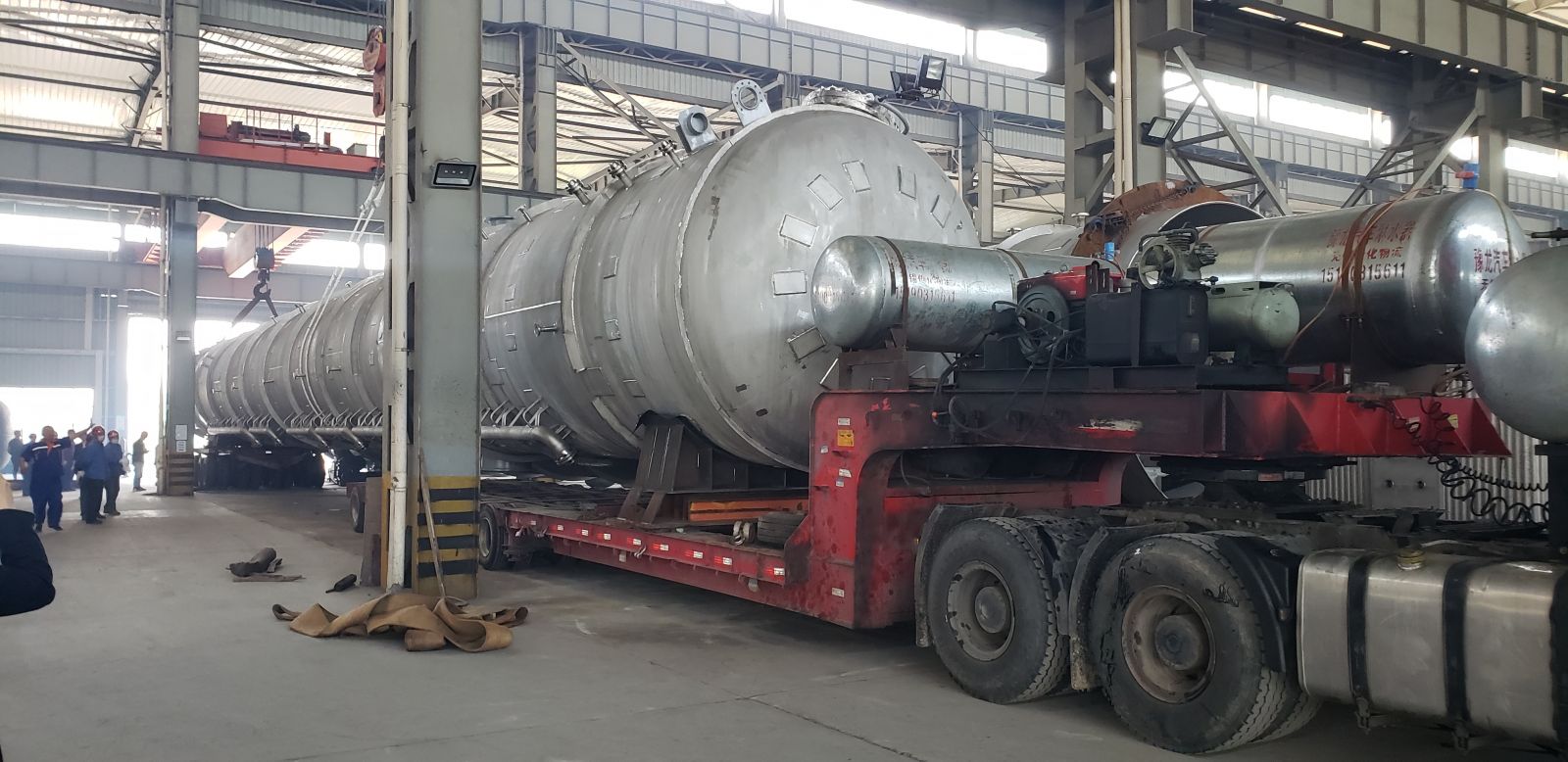 在疫情持續高壓形勢下,我司員工一手抓抗疫,一手趕工期,今天又將兩臺重146噸長達43米的大塔(三脂塔),如期完工,正整裝待發。